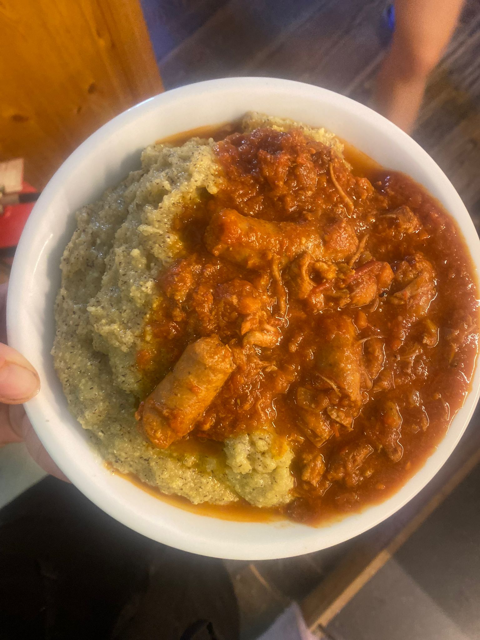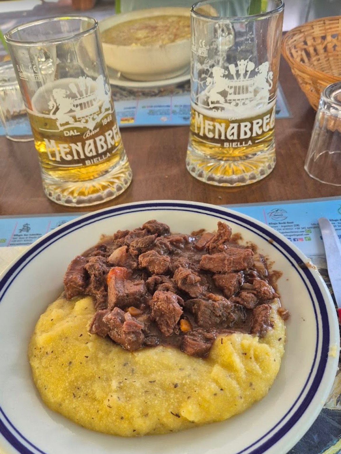 Servita fumante, come vuole la tradizione, e accompagnata da sughi che parlano di territorio — concia, spezzatino, salsiccia, funghi, selvaggina, al ragù oppure con ragù di lenticchie, perfetto anche per chi cerca una proposta vegana.
